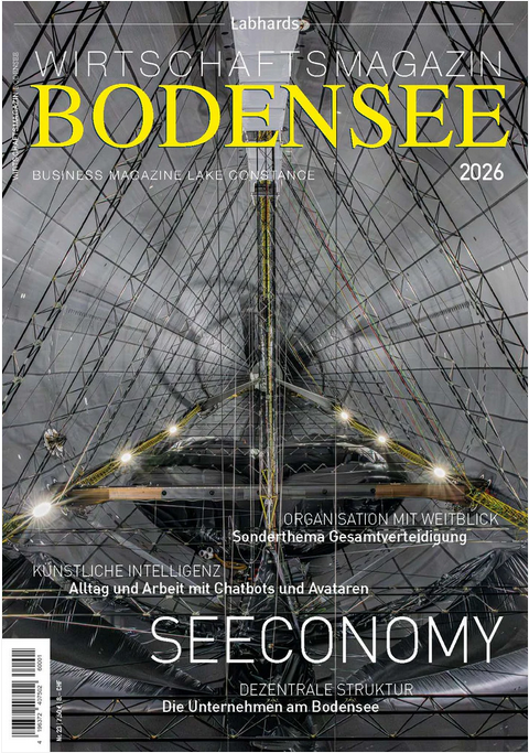 Die neue Ausgabe 2026 zeigt bereits auf dem Titelbild: So wie das durch Streben und Verbindungslinien gut vernetzte Innenleben eines Zeppelins aussieht, funktioniert auch die wirtschaftliche Struktur am Bodensee – die „Seeconomy“. Die Internationale Bodensee-Konferenz stellt unter dem Motto „Lake to the B.“ vor, wie eine der wirtschaftlich stärksten und innovativsten Regionen Europas von dezentralen, aber eng verflochtenen Strukturen profitieren kann. Im Bodenseeraum machen Zusammenarbeit und Partnerschaften nicht vor nationalen Grenzen halt und schaffen dadurch einen echten Mehrwert. Im Magazin werden die neuesten Projekte vorgestellt, die die Seeconomy ausmachen: nachhaltige Lösungen für Mobilität und Energie rund um und auf dem See, spezialisierte Hightech-Lösungen und innovative Gründer:innen, die auf Ehrlichkeit setzen. Außerdem stehen digitale Verteidigungsmaßnahmen und Innovation als Erfolgsfaktoren mit im Fokus.